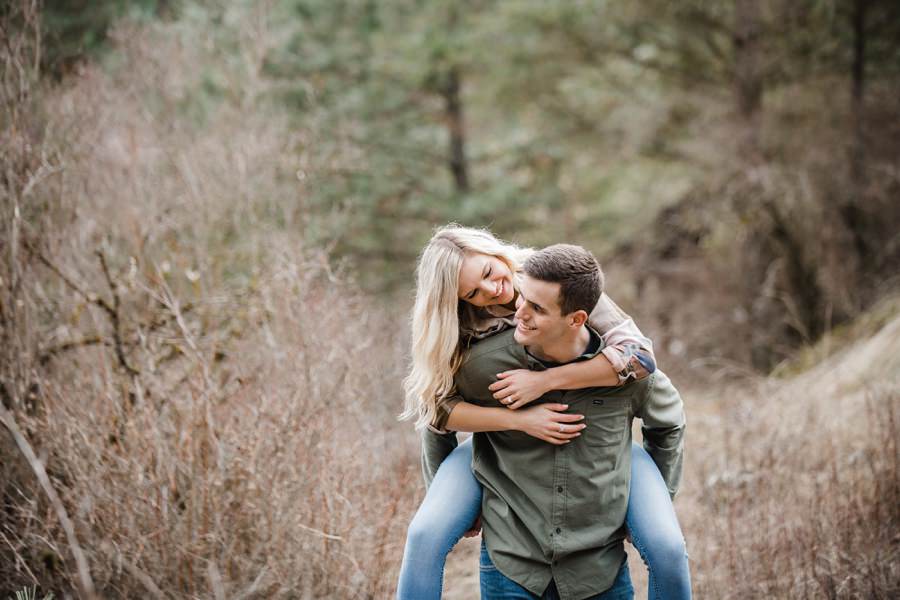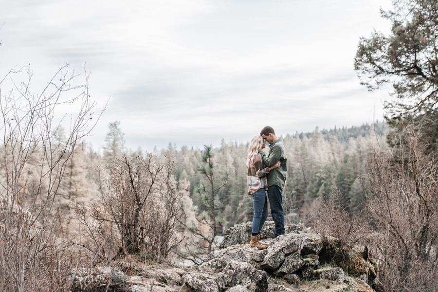 Winter or early spring may seem like a cold and not so attractive season for the Engagement session in Spokane. But not at the Riverside State Park (also called Bowl and Pitcher) and not with this lovely couple – Bret and Caitlyn. Their love for each other and fantastic woodsy backdrop was a perfect combination to make this session a success. We had so much fun with these two, it was more of a relaxed walk together, every photo and every pose was so effortless. For a Wedding photographer in Spokane, it’s truly a joy to be able to document the love and capture those very beautiful moments of friendship.